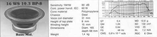 | 6 | SINUS | 16WS10.3BP8/8 | - 3000 | 168 / 100 / 31 | Polypropylen | 2x5.6 | 43 | 3.20 | 0.40 | 0.36 | 24 | 89.0 | neu | 80 | 30 | Doppelschwingspule (als Bassboost) |